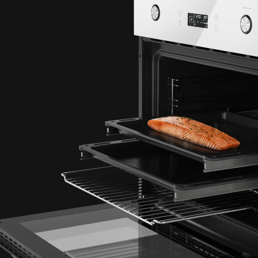 Линейка встраиваемых духовых шкафов с разным типом управления. Классические ручки для регулировки температуры, сенсорный дисплей для настройки параметров в одно касание и современные технологии для экспериментов на кухне